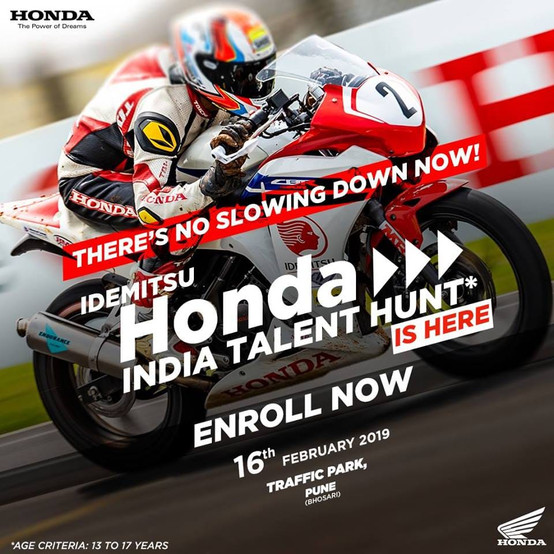 Honda Talent Hunt: Created to identify the next big name in Indian motorcycle racing, the talent hunt is conducted across 5 cities upon Moto 3 motorcycles and the top racers get to race in Honda’s Talent Cup, One Make Championship, and eventually represent Honda at the INMRC and the hallowed MotoGP. They also become the official racing team of Honda Ten10 Racing Academy.